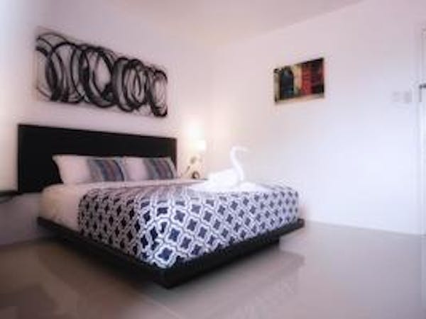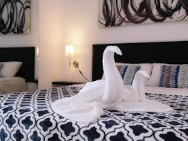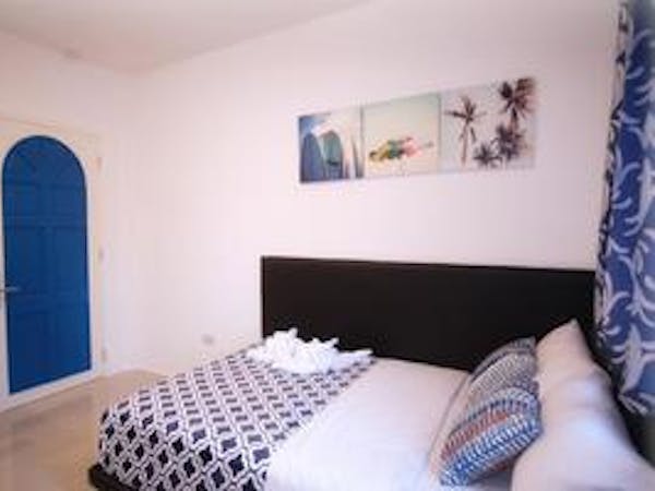This double room features a electric kettle, tea/coffee maker and tile/marble floor.