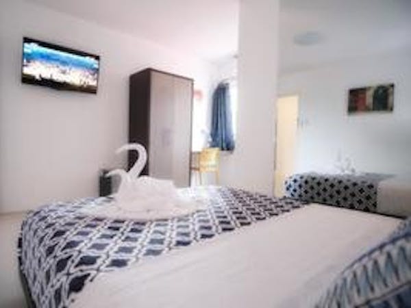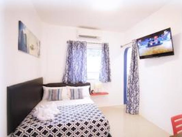 This double room has a electric kettle, tile/marble floor and cable TV.
